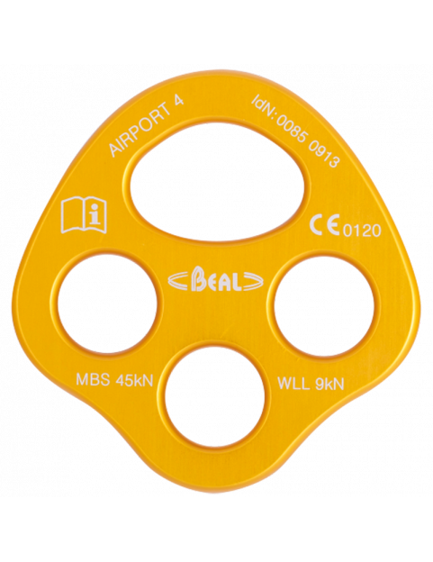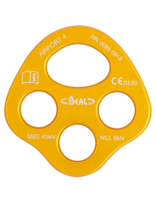 Płytka stanowiskowa z aluminium, do której można wpiąć 4 karabinki.