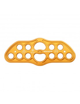 Umieszczone na środku oczko jest wyraźnie większe od pozostałych. Tego typu konstrukcja pozwala na płynniejsze centrowanie systemu oraz umożliwia wpięcie do punktu dwóch karabinków jednocześnie.