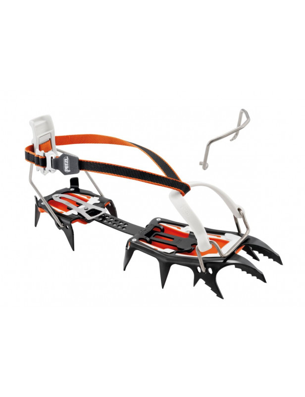 Niezastąpiony partner podczas technicznego wspinania. Pionowe, ząbkowane, przednie ostrza zapewniają dobrą penetrację w twardym lodzie i komfort w terenie mikstowym, a jednocześnie dobrą przyczepność w śniegu. Rozmieszczenie 12 zębów wpływa na stabilność i przyczepność przy niewielkim nachyleniu, jak również w bardziej stromym terenie. System mocowania LEVERLOCK UNIVERSEL jest dostosowany do butów z wycięciami z tyłu.