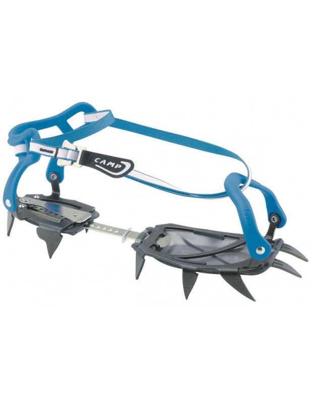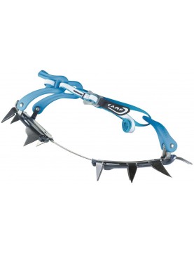 Wyjątkowy, elastyczny łącznik sprawia, że chodzenie w butach górskich z miękką podeszwą nie stanowi problemu. Raki współpracują z ruchami stopy nie utrudniając stawiania kolejnego kroku. Dodatkowa blaszka ułatwia zmniejszenie rozmiaru bez konieczności skracania łącznika. 12 stalowych zębów dba o przyczepność na lodzie i śniegu optymalnie rozkładając siłę nacisku. Zwiększa to zarówno bezpieczeństwo jak i żywotność raków, zwłaszcza w terenie mieszanym, gdzie śnieg przeplata się z kamieniami i skałą. Płaskie zęby atakujące dobrze osiadają w zmrożonym śniegu na stromych podejściach. Przesunięty ku przodowi profil kolejnych zębów dodatkowo stabilizuje pozycję.