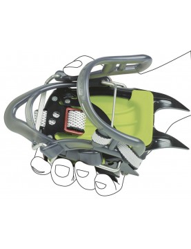 Elastyczny łącznik znacząco podnosi komfort chodzenia zwłaszcza w butach o dosyć miękkiej podeszwie. Asymetryczny kształt w pełni koresponduje z profilem nowoczesnych butów górskich. Aktywne antiboty skutecznie zapobiegają zbieraniu się śniegu pod spodem raków. Przy każdym kroku podkładka lekko ugina się utrudniając jego przyklejanie. Do zestawu dołączony jest pokrowiec na raki.