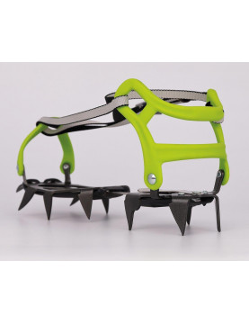 Wyjątkowy, elastyczny łącznik sprawia, że chodzenie w butach górskich z miękką podeszwą nie stanowi problemu. Raki współpracują z ruchami stopy nie utrudniając stawiania kolejnego kroku. Dodatkowa blaszka ułatwia zmniejszenie rozmiaru bez konieczności skracania łącznika. 12 stalowych zębów dba o przyczepność na lodzie i śniegu optymalnie rozkładając siłę nacisku. Zwiększa to zarówno bezpieczeństwo jak i żywotność raków, zwłaszcza w terenie mieszanym, gdzie śnieg przeplata się z kamieniami i skałą. Płaskie zęby atakujące dobrze osiadają w zmrożonym śniegu na stromych podejściach. Przesunięty ku przodowi profil kolejnych zębów dodatkowo stabilizuje pozycję.