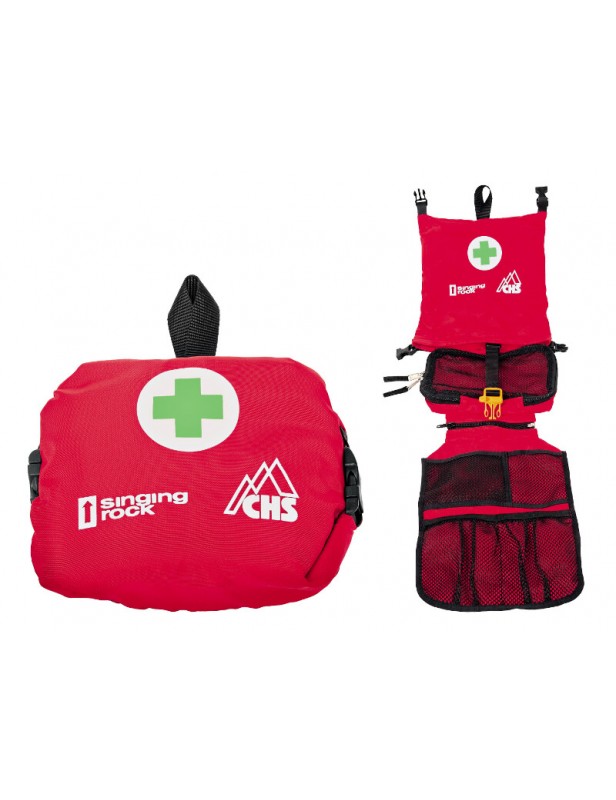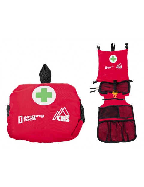 Duża siatkowa kieszeń zapinana na zamek. Wewnętrzna klamra spinająca z gwizdkiem ratunkowym. Ponieważ ma wytrzymały materiał zewnętrzny, dlatego apteczka do stosowania w wymagających warunkach.