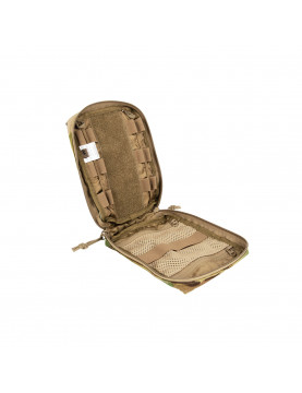 Saszetka na akcesoria o wymiarach 20 x 15 x 6 cm, z dużym otworem i systemem mocowania MOLLE. Wewnątrz znajdują się rzepy MOLLE, siatkowa kieszeń i elastyczne pętle.