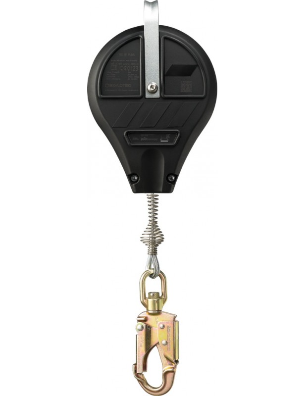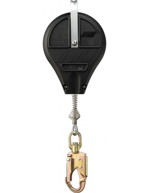 W modelu zastosowano mocną sprężynę, która w szybki, ale kontrolowany sposób zwija nadmiar kabla. Porządkuje tym samym pole pracy oraz eliminuje ryzyko powstanie niepożądanego luzu w systemie. System działa progresywnie, pozwalając na swobodne przemieszczanie się w czasie pracy, jednak w sytuacji gwałtownego szarpnięcia natychmiast się blokuje. Technik jest w ten sposób zabezpieczony przed upadkiem z wysokości, a dodatkowo ma zapewnione komfortowe warunki pracy.