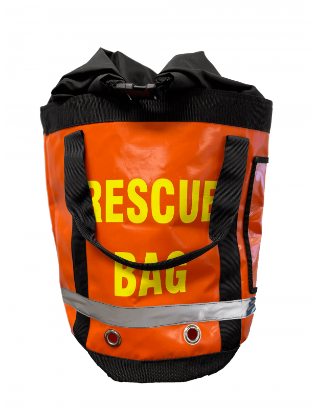 Ratowniczy z białym krzyżem i dodatkowa taśmą odblaskowa.