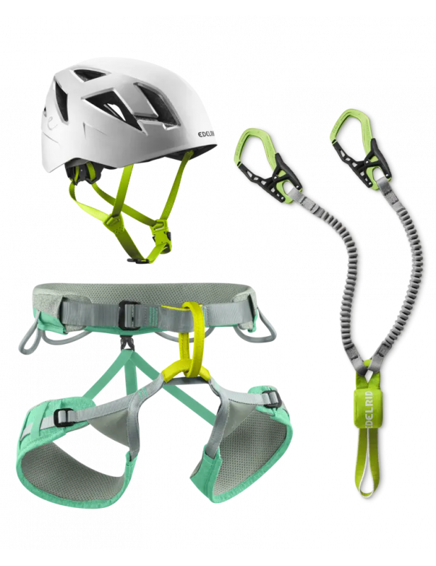 Bardzo wygodny zestaw via ferrata zawierający wszechstronną uprząż wspinaczkową JAYNE, sprawdzony zestaw via ferrata CABLE KIT z odpornymi na zużycie, elastycznymi ramionami z taśmy oraz lekki i niezwykle stabilny kask hybrydowy ZODIAC.