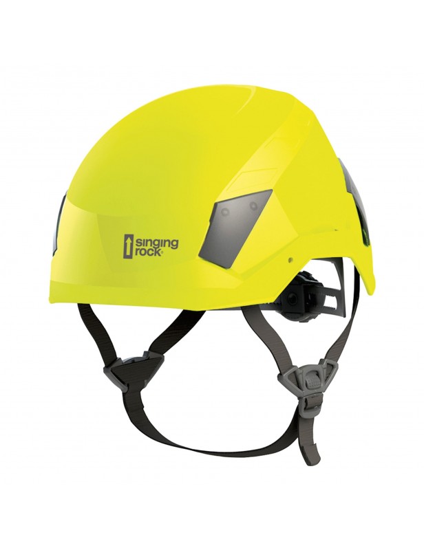 Kask FLASH ACCESS jest zgodny z normą EN 397 i EN 12492, odporny na niskie i wysokie  temperatury, boczne odkształcenia, spełnia warunki izolowania od ładunków elektrycznych. Prosty i skuteczny sposób regulacji obwodu z tyłu kasku wygodnym pokrętłem. System taśm regulacyjnych umożliwia precyzyjne dopasowanie taśm bocznych i podbródkowej.