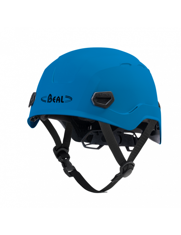 Lekki kask wyposażony w skorupę ABS z polistyrenową wyściółką dla optymalnej absorpcji energii w przypadku uderzenia. W celu uniknięcia uduszenia pasek podbródkowy rozpina się przy obciążeniu 15 - 25 daN.
